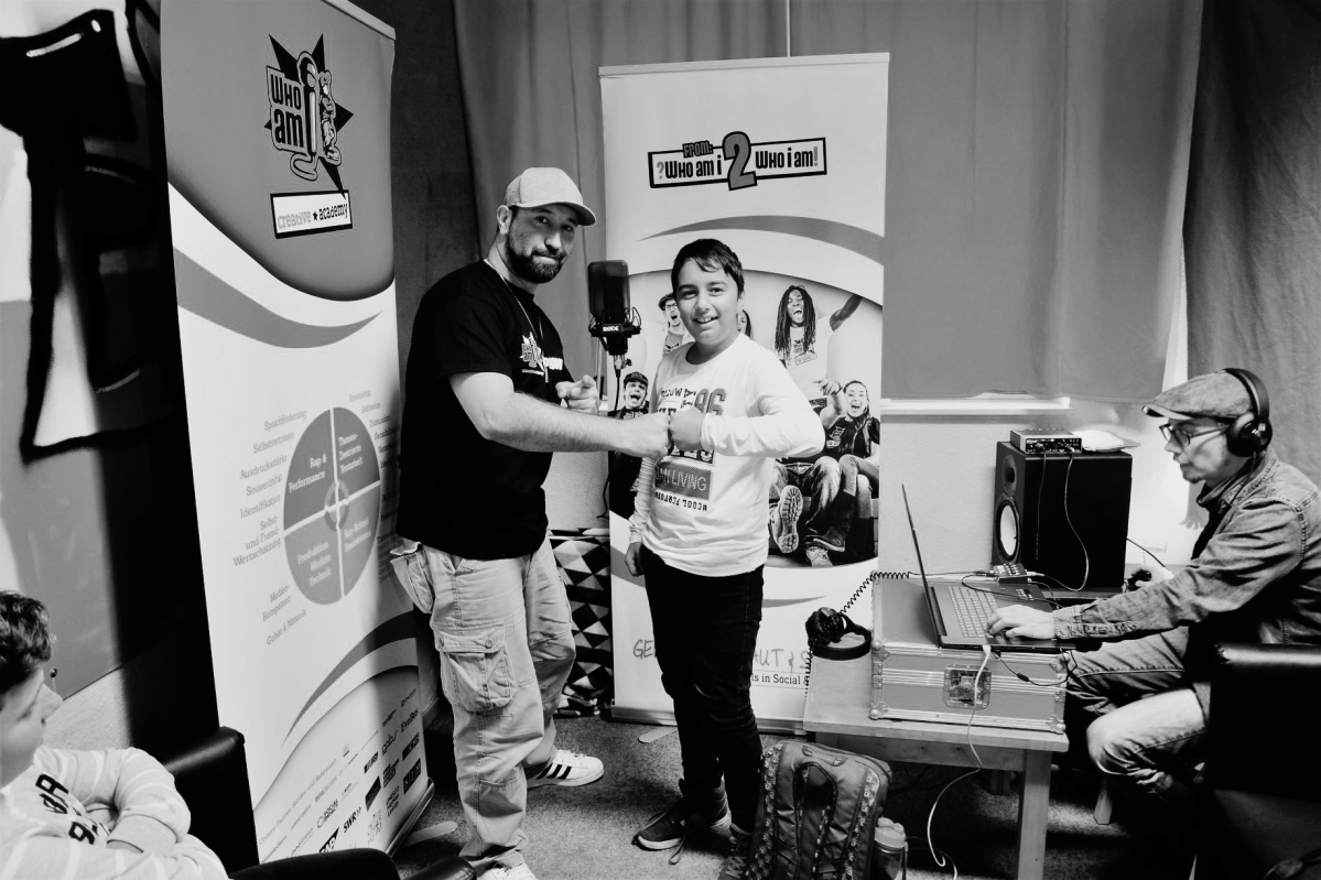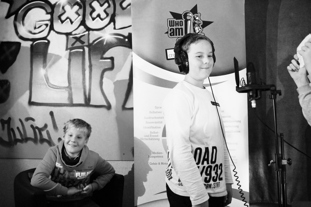 Authentische autobiographische Textarbeit und ausdrucksstarke sprachliche Performance sind das Steckenpferd unserer Coaches. Persönliche Fragen, Ziele und Hoffnungen, aber auch Ängste und harte Erfahrungen werden mit den Coaches in Texten bearbeitet und ein Transfer in lebendige Worte und gelebte Einstellungen ermöglicht. Neue Mantras entstehen und das Performance-Training ändert den eigenen Auftritt für immer. Hier kann man eine ganz neue Wahrnehmung und echte Skills für Kommunikation, Schulalltag und Bewerbungsprozess mitnehmen. Es geht im künstlerischen und sportlichen Prozess auch immer um Geduld mit sich selbst und mit anderen (z.B. in der Aufnahmesituation) und das Thema "Dranbleiben" wird auf diesem Weg sehr intensiv erlebt. Der gemeinsame Erfolg am Live- oder Studiomikrofon, die positive Erfahrung in der Gruppe und die Erweiterung der eigenen Komfortzone machen neue Erkenntnisse über sich und die anderen möglich. Mit der gelungenen Aufnahme haben die Teilnehmer - neben dem Erfolgserlebnis - auch tatsächlich ein Produkt ihrer kreativen Schaffenskraft in der Hand.